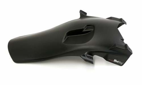 "MudSling MAX"は、雨天時、あるいはGSモデルが得意とするダート走行を楽しんだ場合に、後輪が跳ね上げる泥汚れなどがフェンダー内部から飛散するのを抑え、リアサスペンションユニット、バッテリーケースなどの汚れを効率的に防いでくれるインナーフェンダーです。ストックはもとよりWP、オーリンズ等高性能サスペンションユニットに交換されたユーザーの皆様にとって、汚れに起因するトラブル発生の可能性を低く抑え、性能保持性、洗車時間短縮など機能面でのメリットがある他、樹脂成形部品ならではの形状と、マットブラック仕上げの外観でカスタムパーツとしての美観もお楽しみ頂けます。