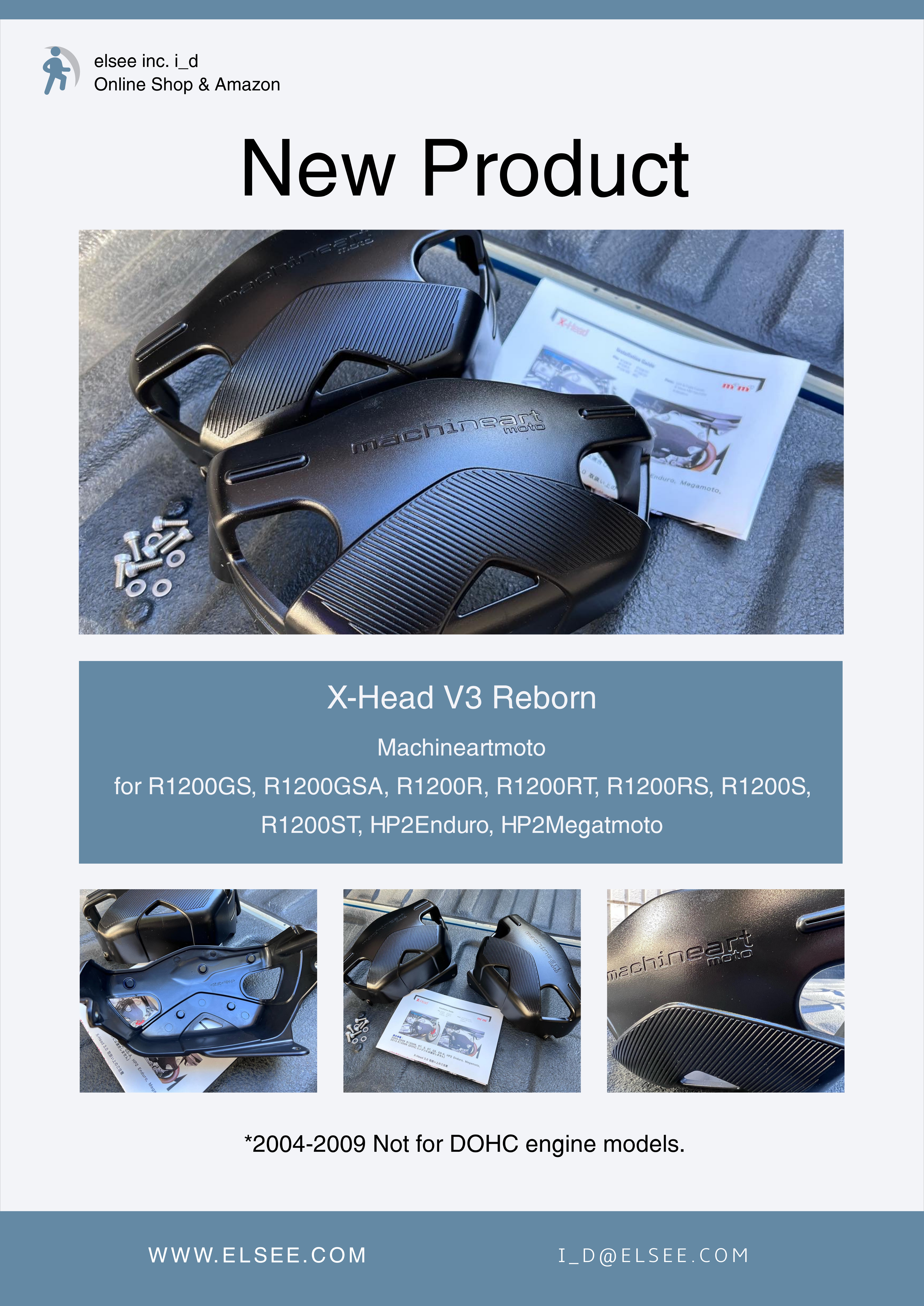 "X-Head 3.0"はBMW R1200シリーズが搭載する油冷SOHCボクサーエンジン用にデザインされた機能パーツです。転倒時などのダメージ低減を目的としてバージョン3.0となった"X-Head"は、ナイロン系樹脂配合のグラスファイバーというタフな素材を使用し5mmの厚さを持つ本体と最適化されたリブ配置により高い耐衝撃性、耐熱性、耐ケミカル性を持っています。