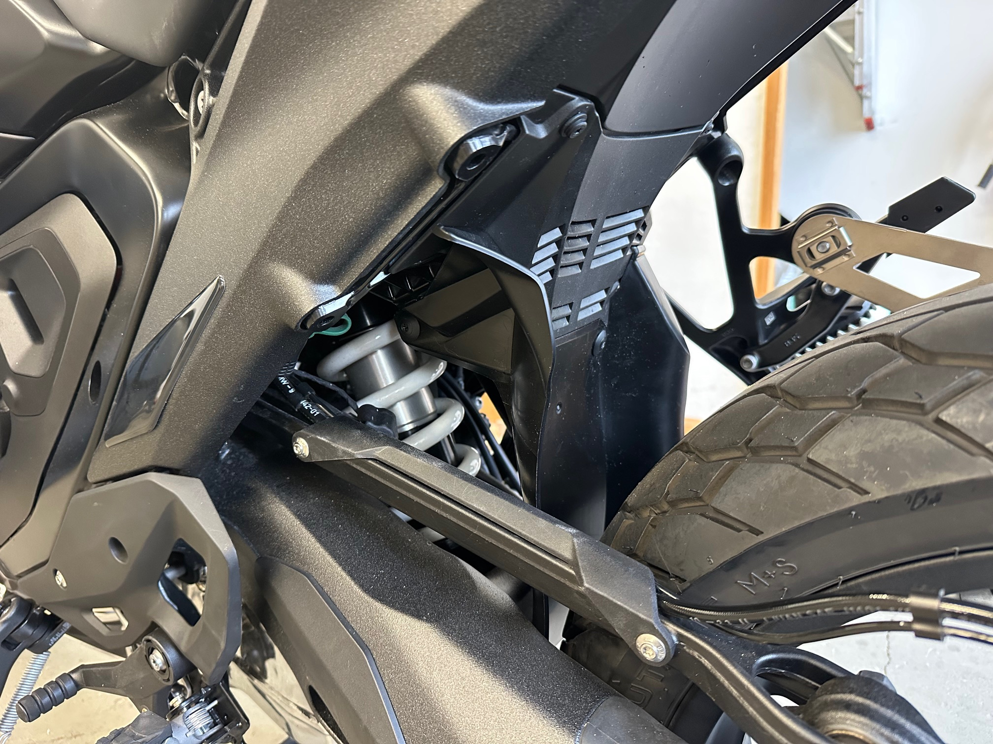 これにより、リアサスペンション、ライダーの足下の汚れは劇的に減少します。